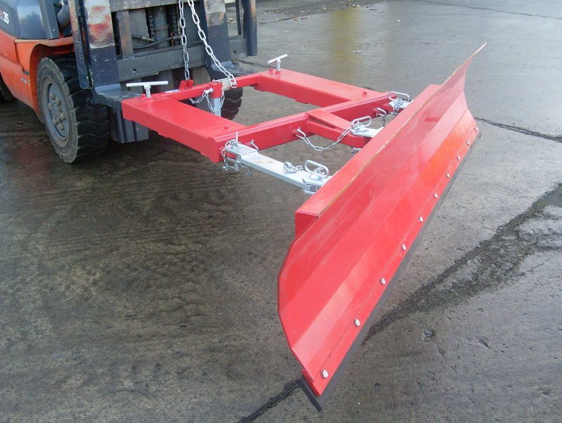 De verstelbare sneeuwruimer is te monteren op de vorken van een heftruck en is 30° verstelbaar naar links, rechts of kan voorwaarts gericht worden.