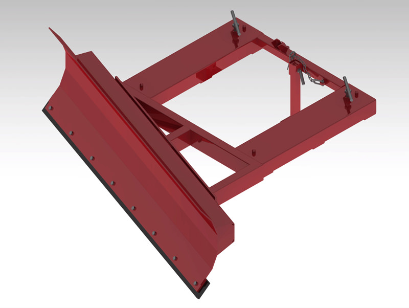 De vaste sneeuwruimer is te monteren op de vorken van een heftruck en kan doormiddel van een ketting vastgemaakt worden aan het vorkenbord.