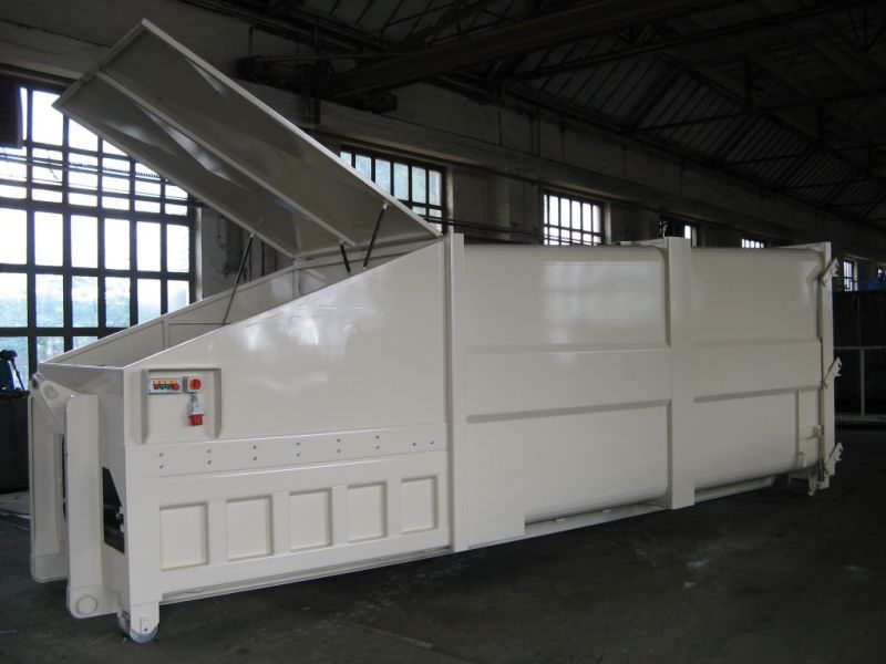 Container en persgedeelte vormen 1 geheel, de lediging gebeurt op een identieke manier als bij gewone afvalcontainers. Deze persen worden ingezet bij een afvalverwerking die makkelijk te comprimeren is. Dit kan gaan van gewoon restafval tot papier/ karton. Monoblocs zijn verkrijgbaar in verschillende volumes.