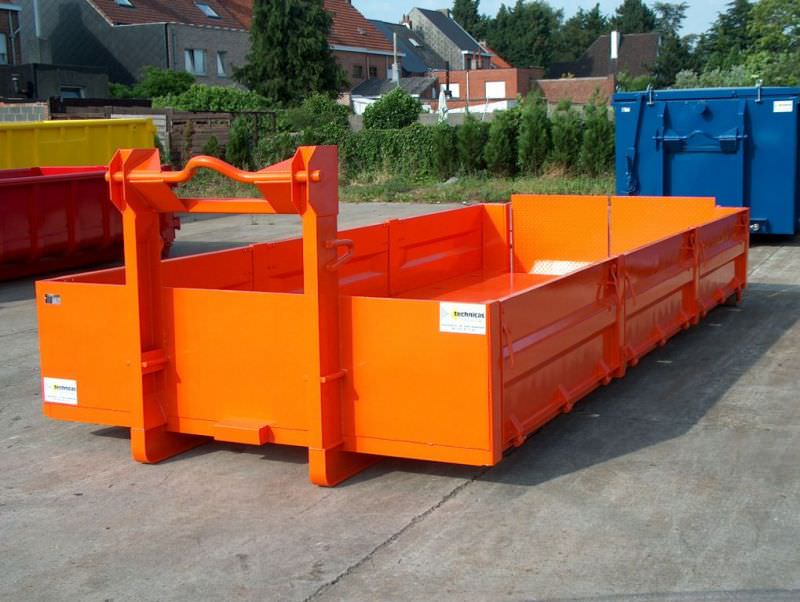 Vlakke containers met stalen zijdeuren, extra uitgerust met hulpveren.