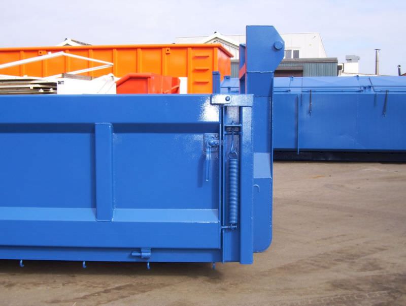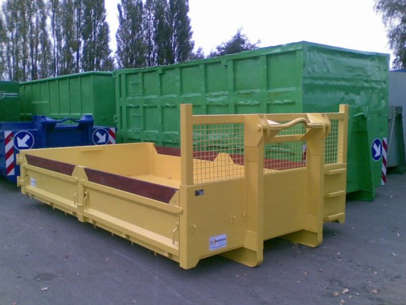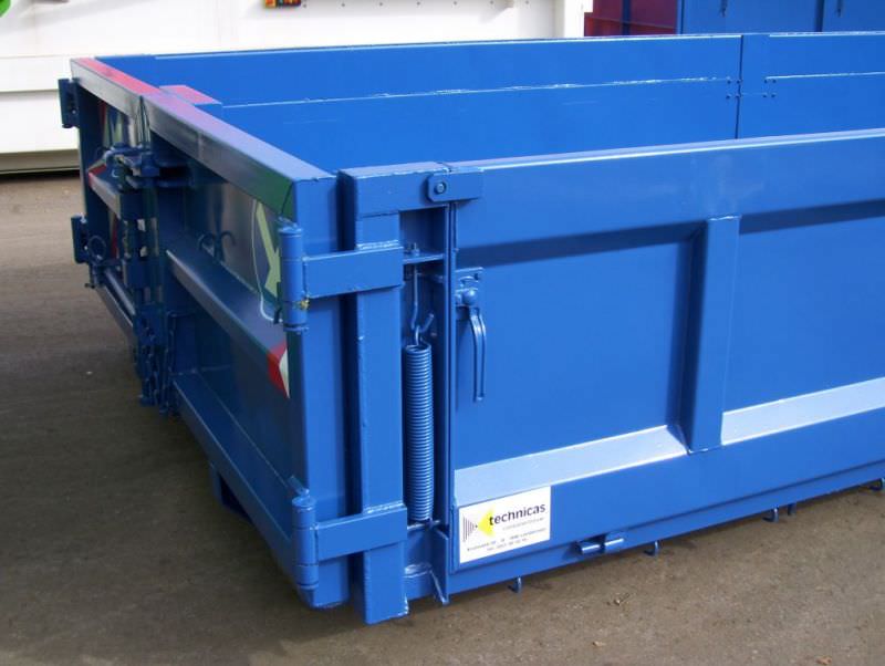 Vlakke containers met stalen zijdeuren, extra uitgerust met hulpveren.