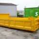Vlakke containers met metalen zijdeuren.